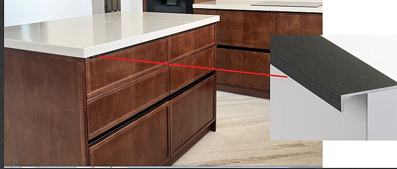 Є ще варіант так званої прихованої ручки без додавання висоти.Це профільна ручка U-9 ,яка накладаэться на тоорец фасаду зверху.Висота залишаэться 860 мм,ручку під стільницею не видно.Між шухлядами залишається ручка Gola. Так роблять коли не можуть собі дозволити 910 -920 і це не тільки з малого росту ,а ще коли хочуть низом зайти під плитку або стільницею на підвіконня.До того ж цей профіль дешевше ніж ручка Gola.
