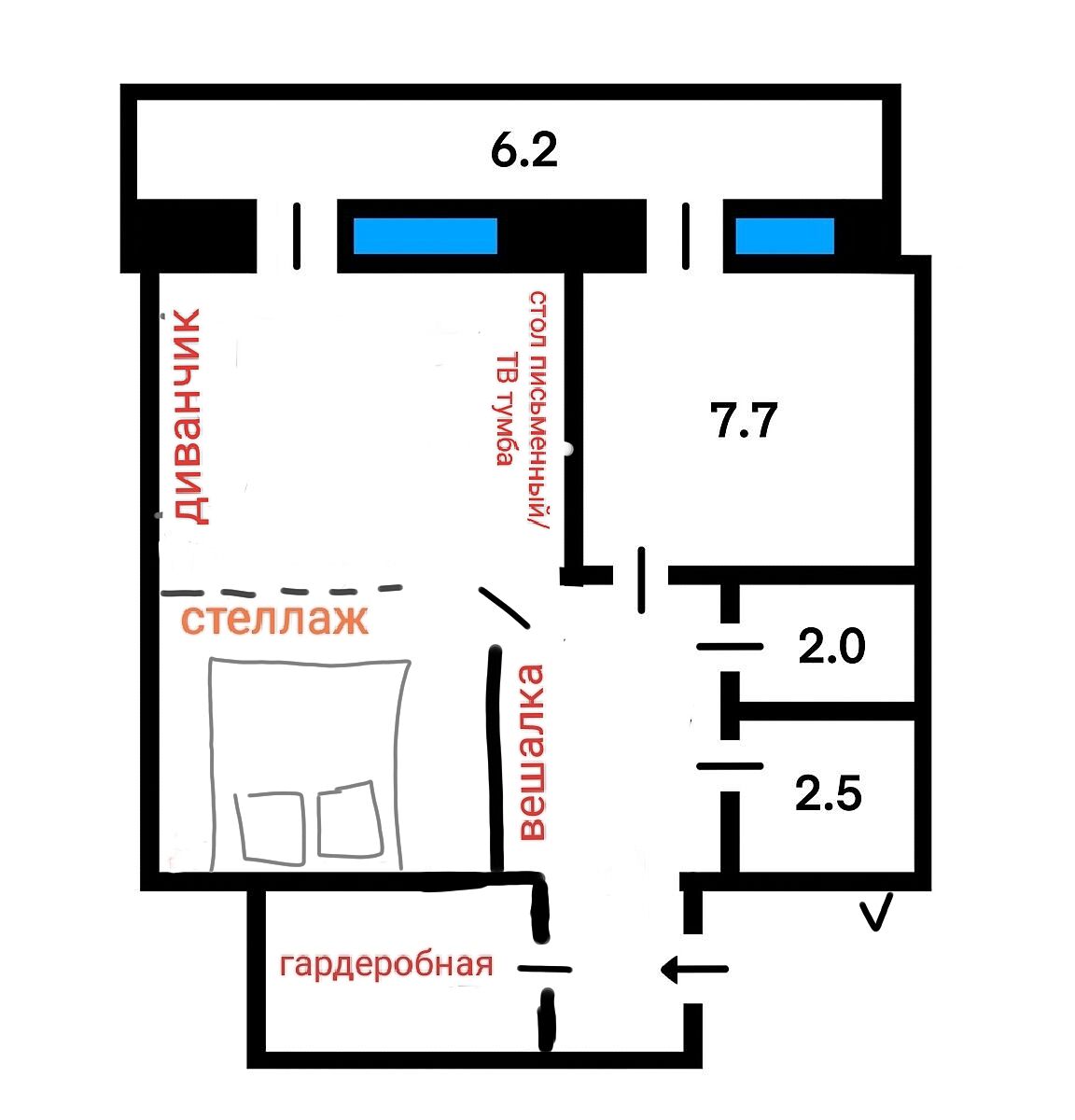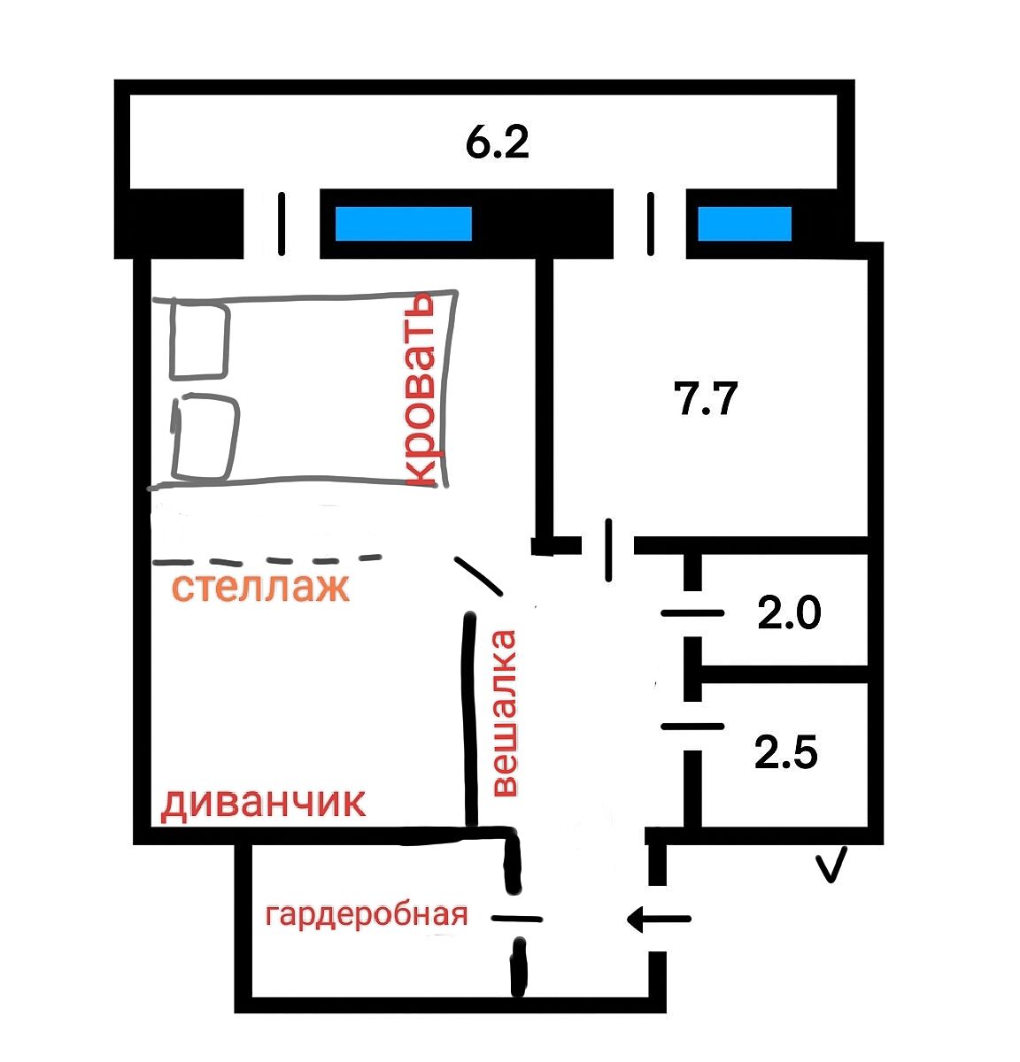 Вообще сложно понять как в квартире в 34-35 кв.м в комнате уместить и кровать , а не диван, и стеллаж и стол и перегородку.