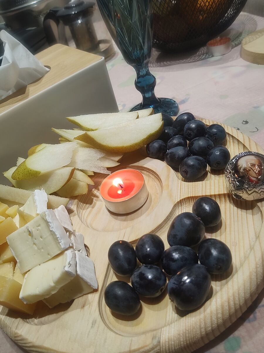 Сначала подумала красиво. Потом отмела конфеты с марципаном, ничего более гадкого сладкого не ела, потом сыр, не люблю никакой кроме радомер, маздам, и сливы..сначала подумала что виноград. Очень на любителя. Но хорошо вам провести время)