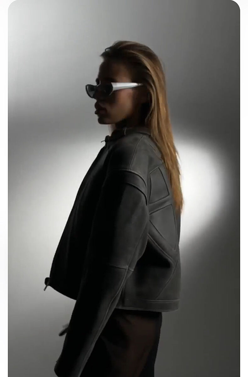 Хотела что-то среднее между косухой и бомбером серого цвета