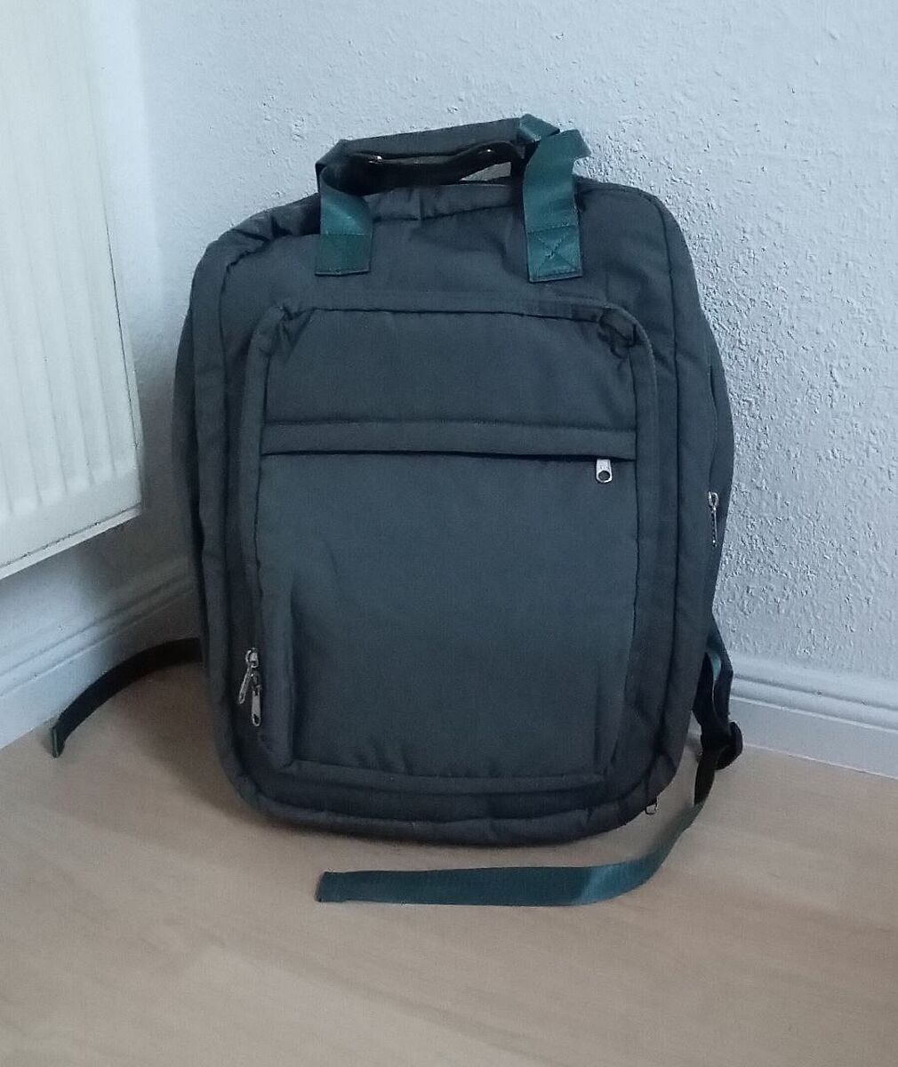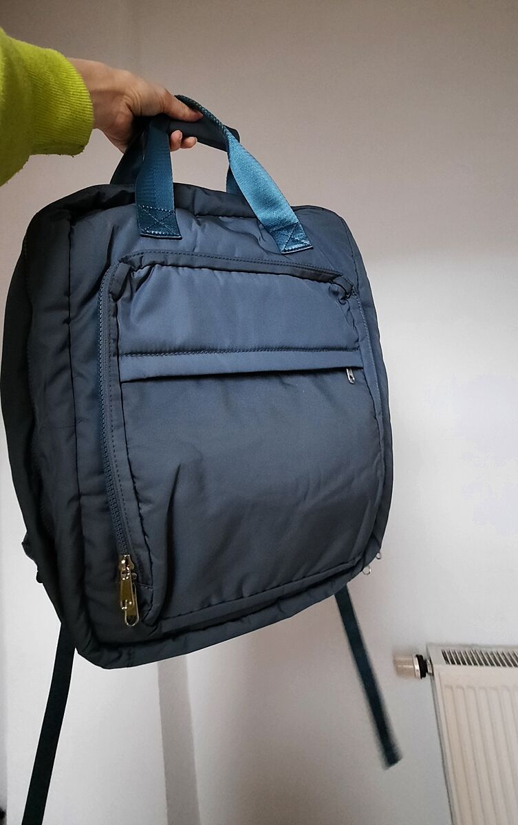 У меня такой. Изначально покупала как просто рюкзак для ноутбука. Но он достаточно вместительный, много разных карманов. Ортопедическая спинка, водоотталкивающая ткань.