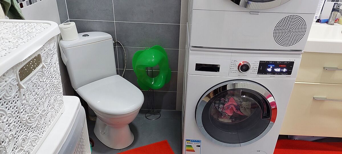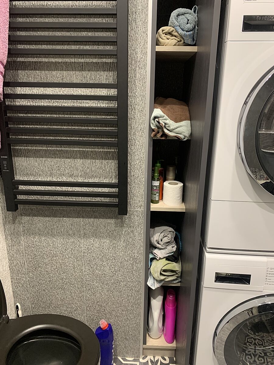 Купили пральну машину з сушильною, поставили в колонну, тепер хочемо замовити меблі і щось не дуже виходить.Раніше пральна стояла зліва при вході, але вона була вужче, ця Bosh набагато глибше. Є ще гардеробна кімната, але там немає каналізації, є меблі, які повністю треба міняти і на підлозі ламінат, думаю, що зовсім незручно ця техніка в гардеробній