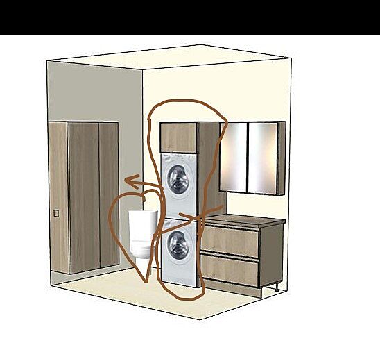 Купили пральну машину з сушильною, поставили в колонну, тепер хочемо замовити меблі і щось не дуже виходить.Раніше пральна стояла зліва при вході, але вона була вужче, ця Bosh набагато глибше. Є ще гардеробна кімната, але там немає каналізації, є меблі, які повністю треба міняти і на підлозі ламінат, думаю, що зовсім незручно ця техніка в гардеробній