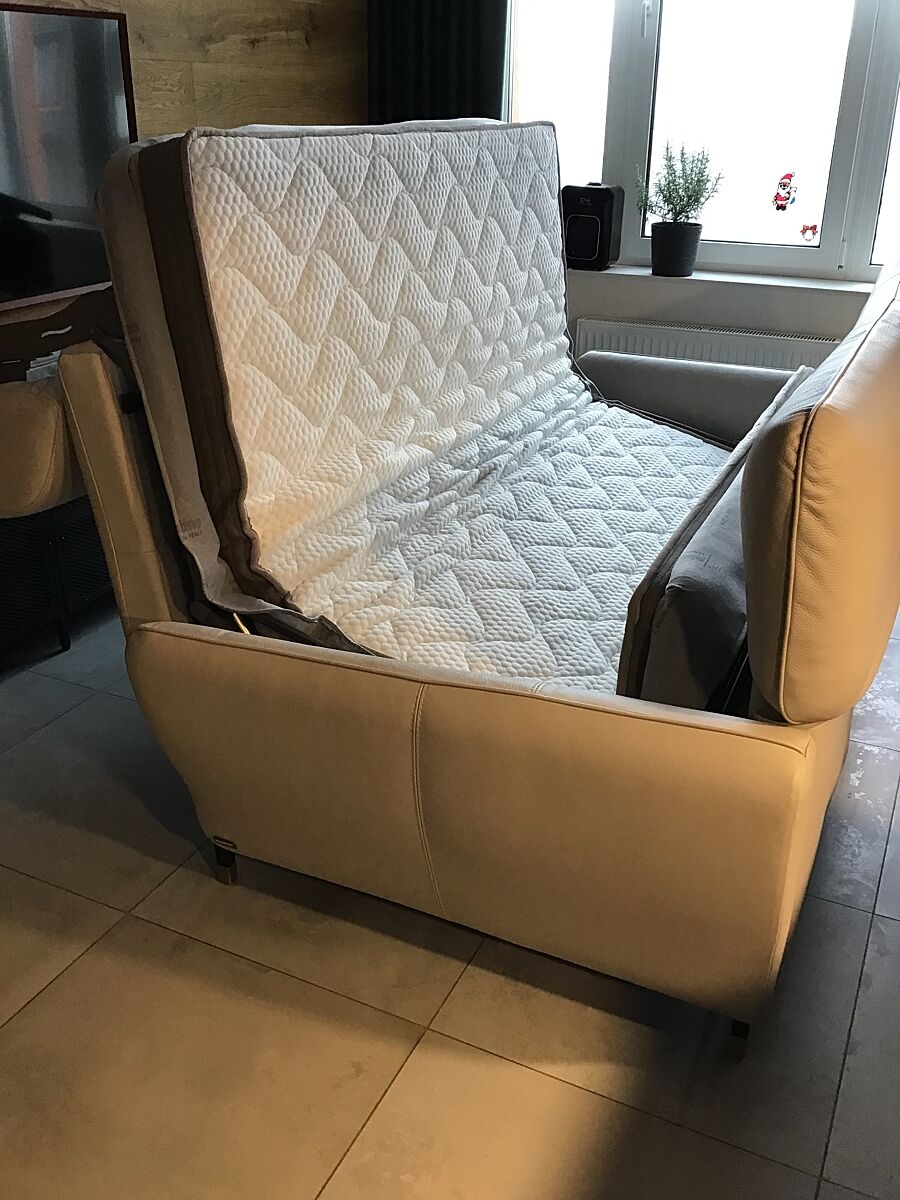 Не, покупали мы его 11 лет назад, но спим только 4 года. Вот нашла фото похожего с матрасом. Но у нас помощнее подлокотники - днем комфортно и мягко сидеть. Собираем каждый день без проблем.