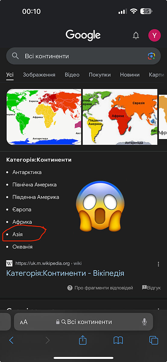 Запитайте в Вікіпедії, що таке континент і чим він відрізняється від материка