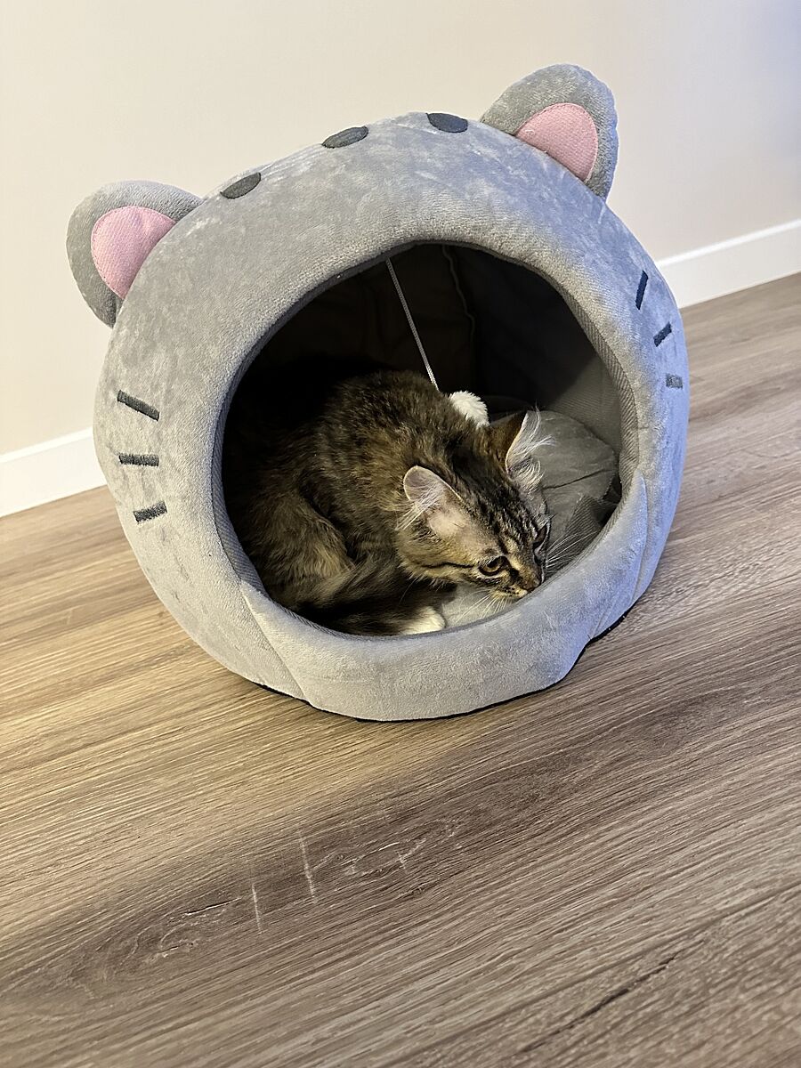 И заселился же. Или заселилась. У меня домики для красоты стоят, а кошки валяются где попало