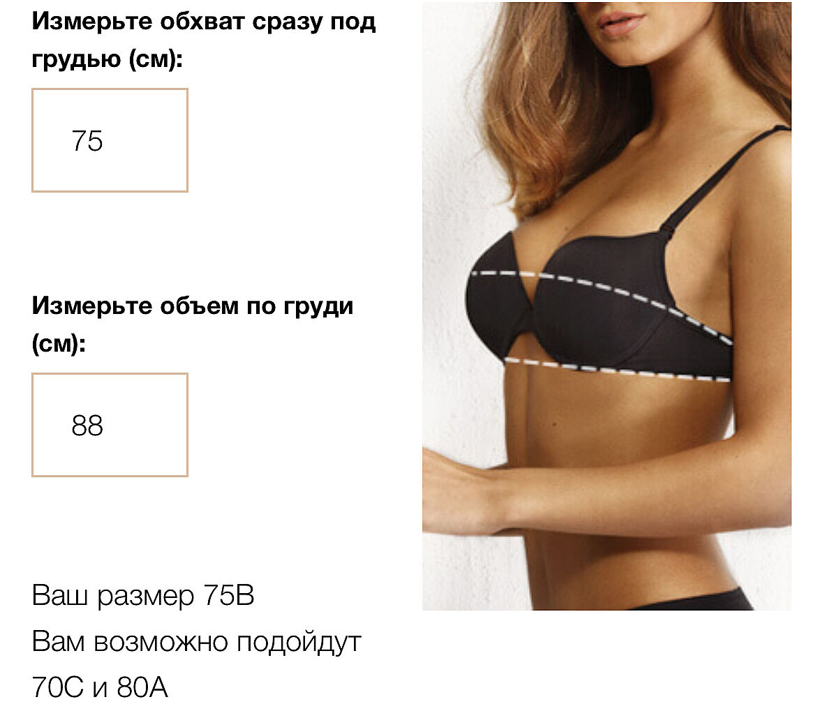 автор, идете в магазин и меряете) Иногда роль играет строение груди, ее форма и расположение, так что замеры не всегда показательны. Я жирная корова, но свободно ношу лифчик 75Б, хотя по замерам мне нужен 90С минимум