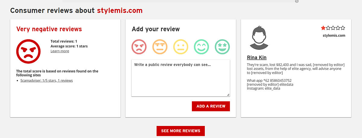 вот проверила сайт на scamadviser, рейтинг 1 из 100