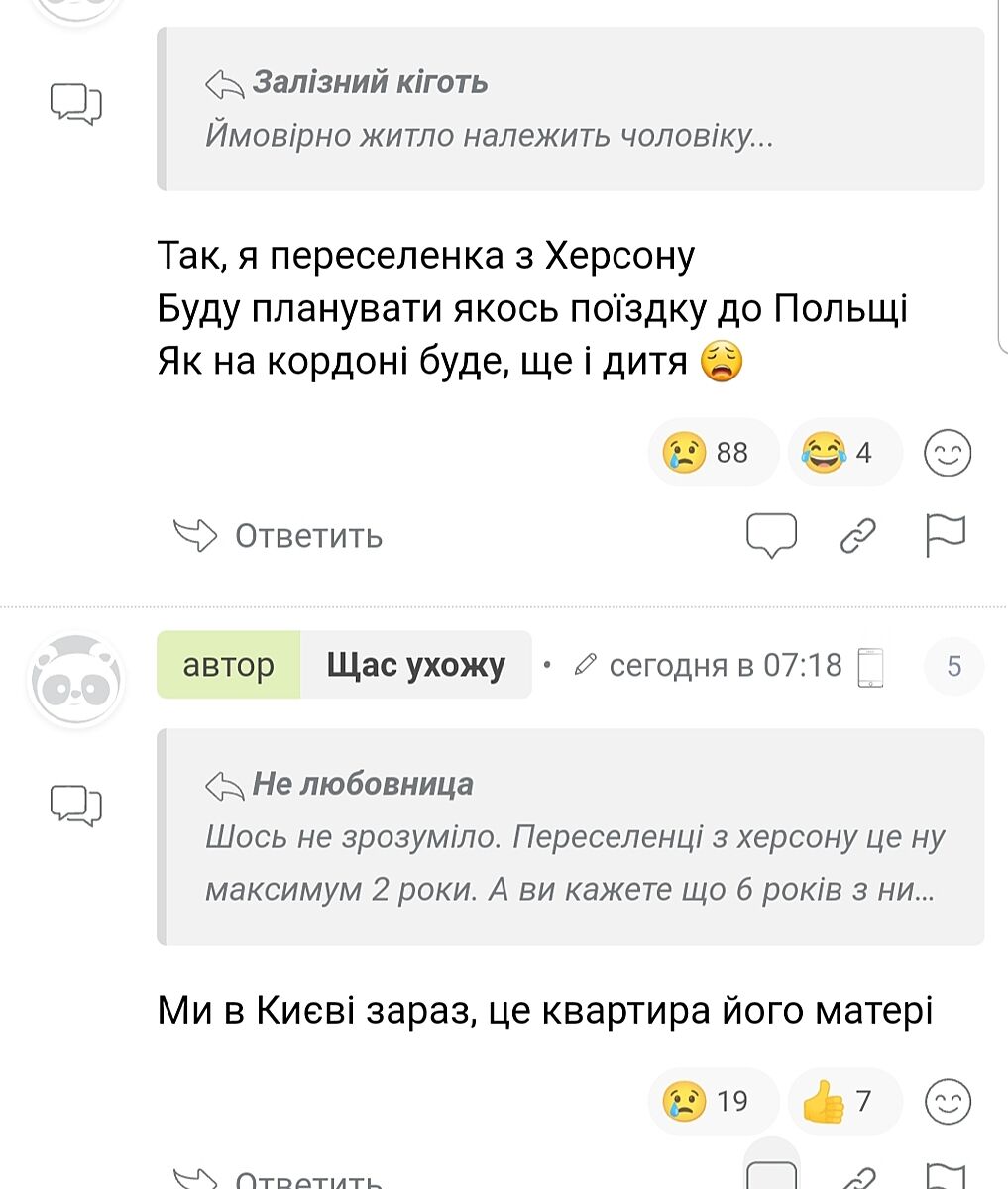 Вирішила не терпіти таке, а на наступному тижні їхати світ за очі, добре що є родичі за кордоном, якось справлюсь. Підтримайте мене будь ласка. Мені дуже боляче, дивитись як він тулиться до неї і обіймає 😭 Боляче за дитину, яка буде рости без рідного батька 😭😭😭