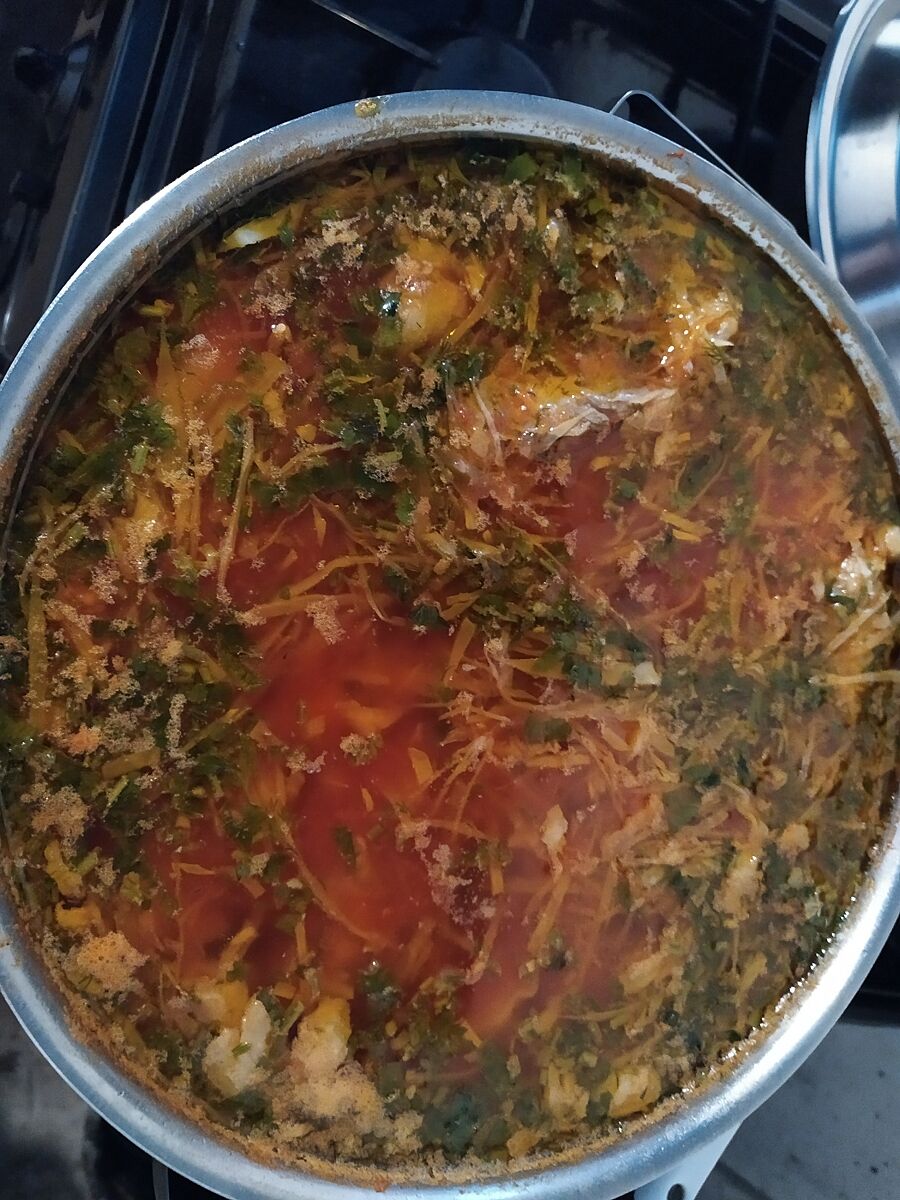 Бульйон на курячих спинках ,штук 5 . Беру в нашей рябе уцененые обветренные .заправляю майонезом в конце и провариваю борщик ещё минут 20 .