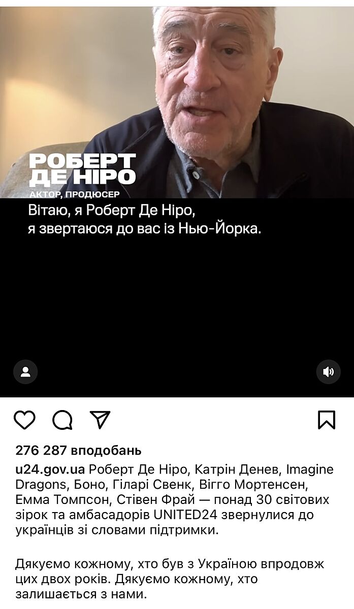 Нас більше підтримує. Imagine Dragons, Боно, Роберт Де Ніро: понад 30 зірок вчергове підтримали Україну