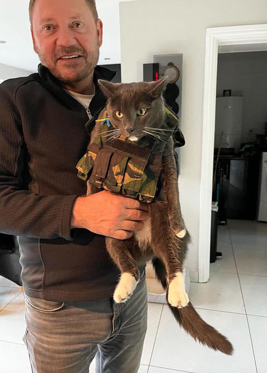 «Dave’s cat loves the new body armour - perfect for the mean streets of Liverpool! It was great seeing you again. Stay strong! R»