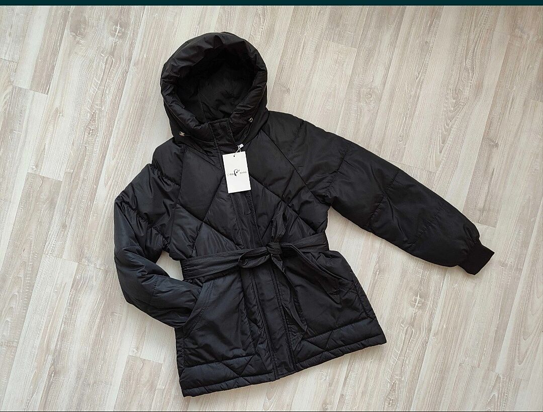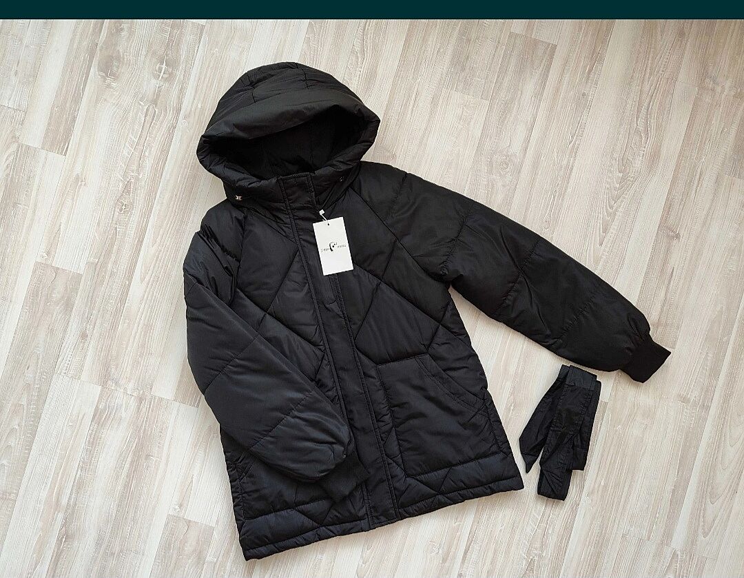 Дві куртки трохи інший фасон, яку обрати! Одна курточка з куліскою, друга під пояс. Дякую за допомону. Колір чорний