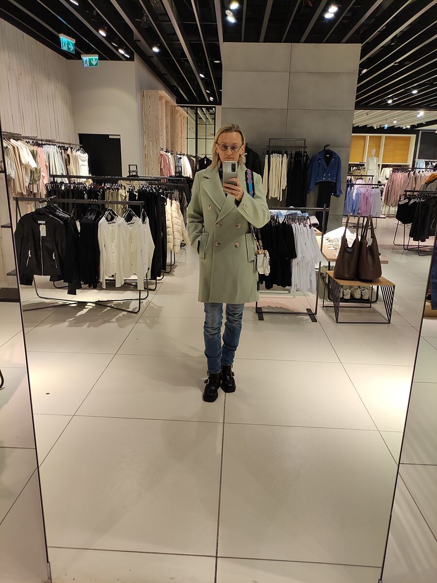 Автор каждую неделю тут фото из магазинов выставляет.Нормальная фигура ,но привести в порядок голову не мешает.Тогда не будет кучи вопросов,почему куча вещей,но отражение не радует