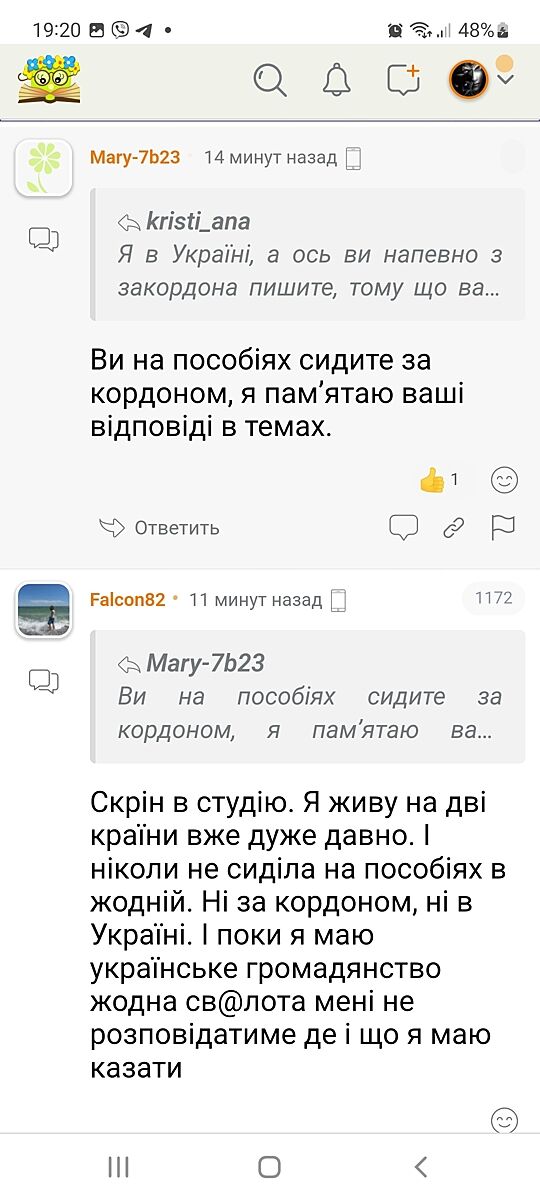 Скрін в студію. Я живу на дві країни вже дуже давно. І ніколи не сиділа на пособіях в жодній. Ні за кордоном, ні в Україні. І поки я маю українське громадянство жодна @лота мені не розповідатиме де і що я маю казати
