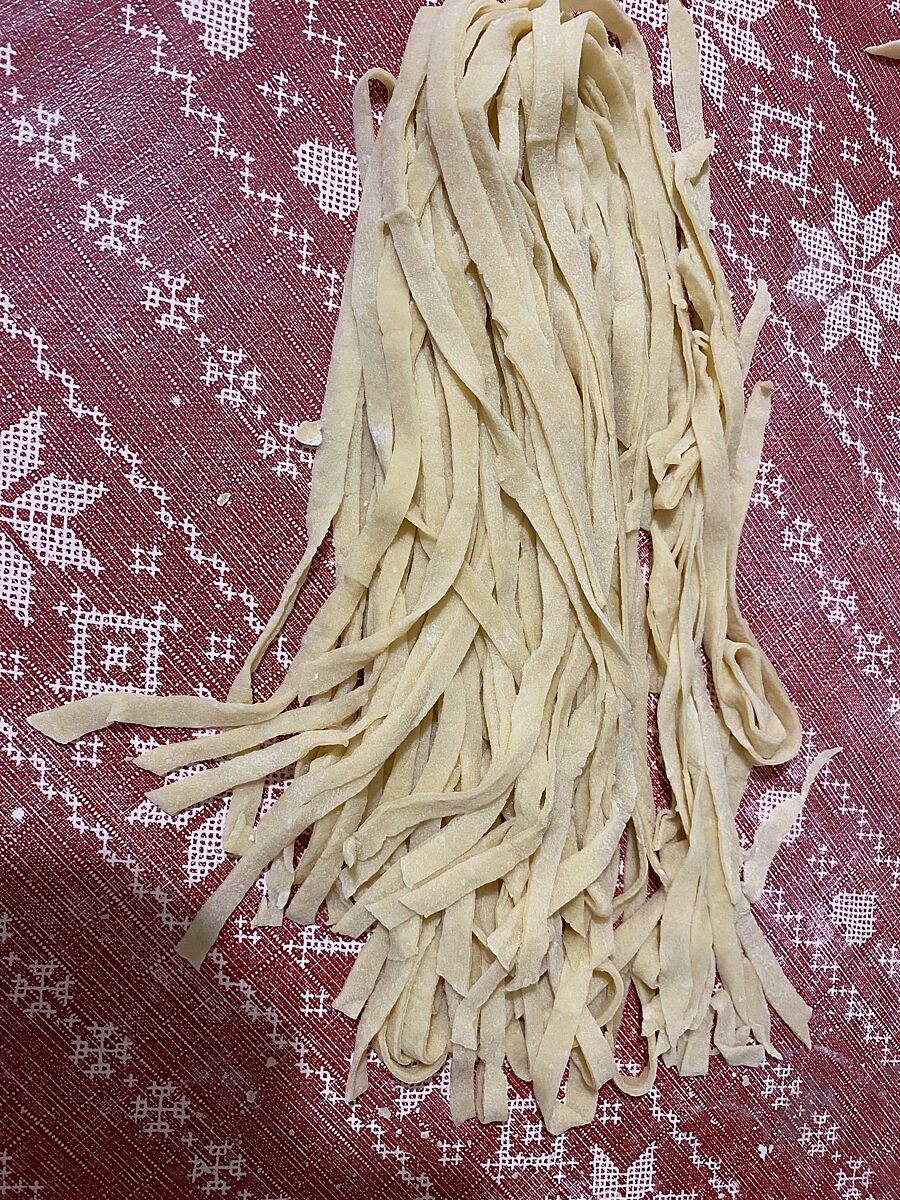 Я только лапшу сделала. Сейчас бульон доварится и будет бульон с лапшой и зеленью.
