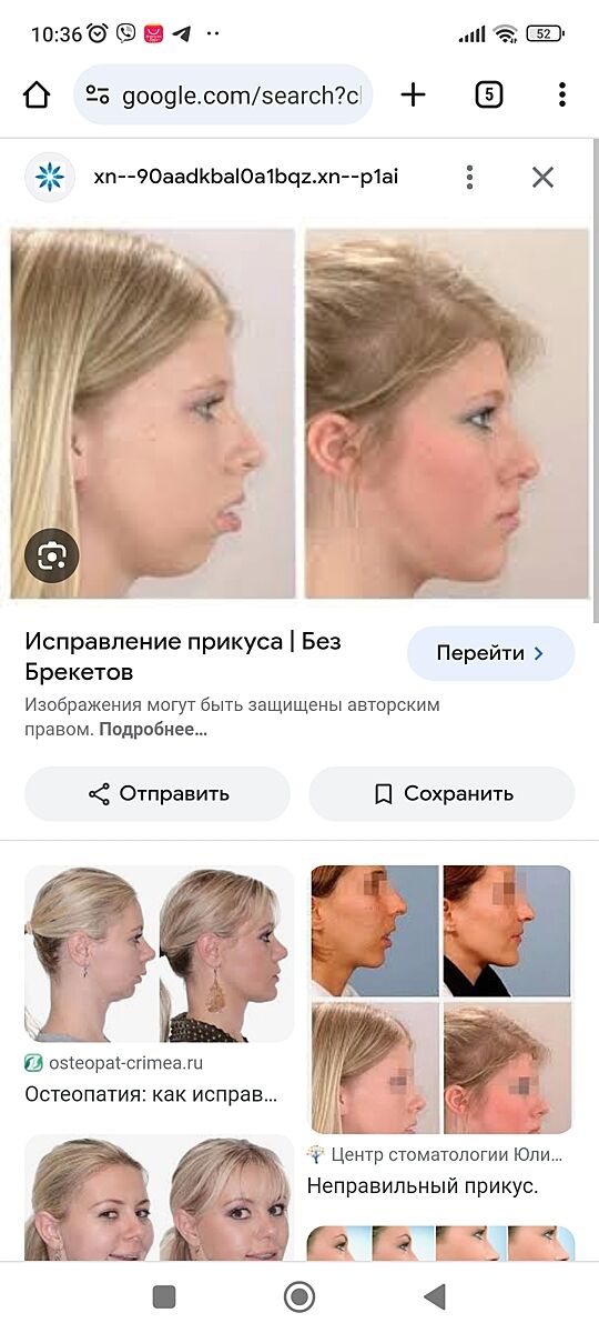 Не слушайте вы всяких о прикусе... Ну не вырастет тут подбородок. Да, зубы выровняют, и всё