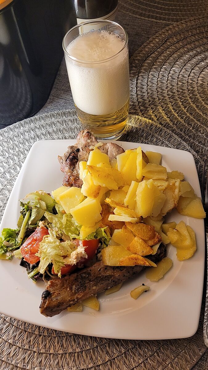 мраморный стэйк и помидорка. Чай с лимоном и сах. замом потом. Я на безуглеводке.
