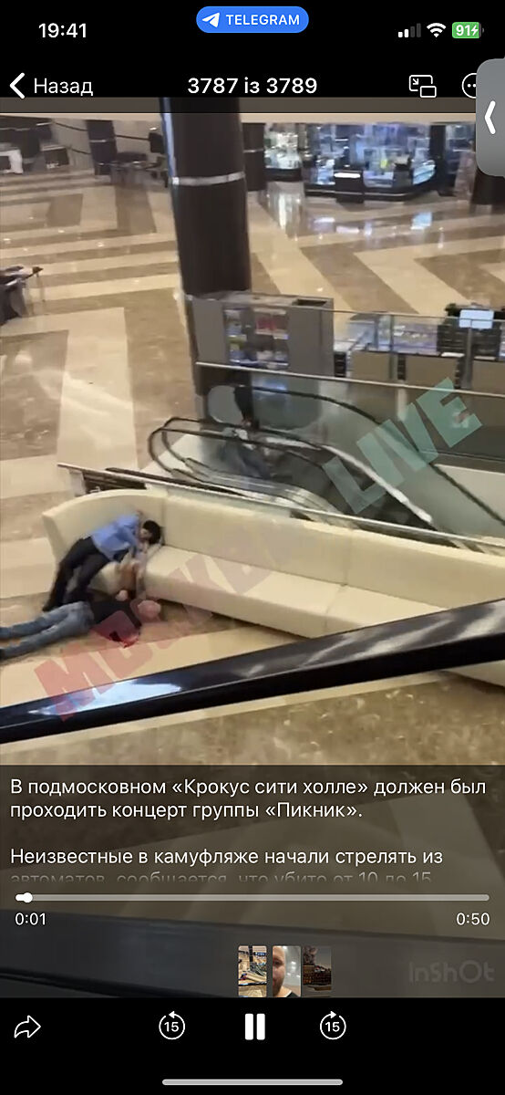 Неизвестные в камуфляже начали стрелять из автоматов, сообщается, что убито от 10 до 15 человек, десятки ранены. Потом вроде бы произошел взрыв, сейчас здание горит.