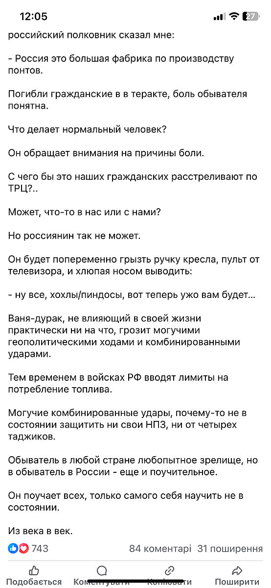 Нахиба им что-то доказывать. Вчера кацапы сказали что разбомбили Днепрогэс чтобы обесточить наши военные заводы, исключительно с этой целью запускались ракеты. Будто в автономный генератор какой-то попали. Мне кажется что это работа ФСБ, чтобы заткнуть рты той маленькой жменьке, которая оплакивает навального и шастает с плакатами ’нет войне’. Мол глядите, кого вы защищаете.