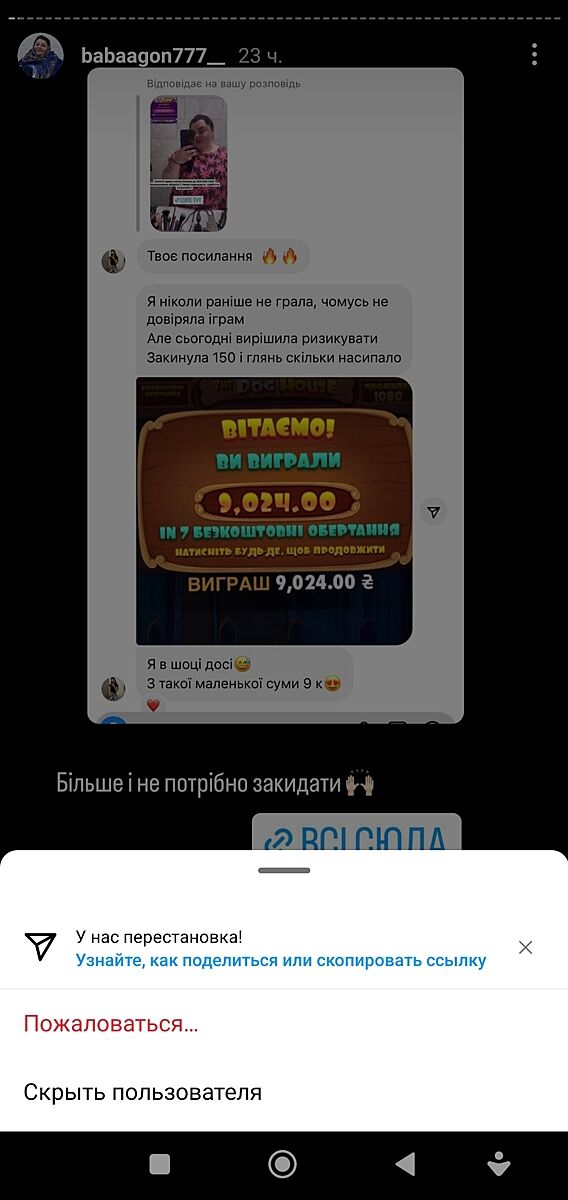 Безконтрольна реклама азартних ігор в інстаграм просто дно. Я розумію, що основний контингент, який споживає такі ігри є воїни ЗСУ, тому, що людина при загрозі і в стресі відволікається на такі азарні ігри, котрі ніхто не регламентує. При цьому працюють короткострокові кредити. Постійно скаржуся на ці види реклами про виграші у алхім бабиагонь та ін. недоблогерів, як шахрайство. Але підкажіть, як правильнло оформити скаргу. Бо така реклама в цивільних країнах повинна бути регламентована на обмежений контингент і за виконанням певних умов. Я пам´ятаю, як приймали цей законопроект та обіцяли мільярдні надходження, але в бюджеті цих надходжень немає.