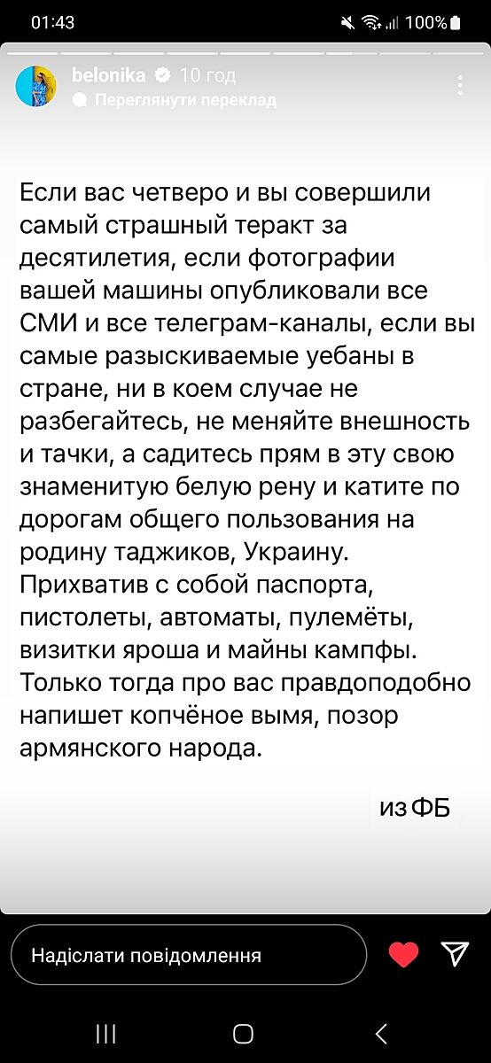 Ага. По крокусу ходили такие командос, вчетвером закошмарили толпу народу, включая сторожей-охранников, спалили к #уям здание, вышли незамеченными с автоматами наперевес, сели в припаркованное у оцепленного здания авто и поехали себе к границе, где с обеих сторон километры заминированных полей, куча полиции, военных, разведслужб, окно искать) На кадрах ’задержания’ таджикские штукатуры с тремя классами образования, дайте им АК в руки, они его держать не умеют, уверена. В концертном зале работали профи, таджики тупо повелись подшабашить клоунами. Походу они не в курсе даже за что их приняли и ухо оторвали.