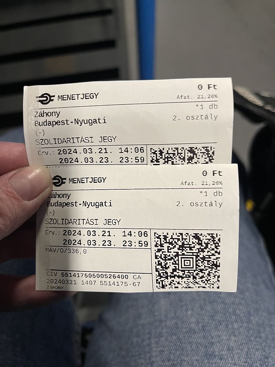 Да, с Захони в этот раз доехали полностью бесплатно. До этого места стоили около 80 грн. Сейчас в кассе выдали только билеты солидарности. в Будапеште действительно метро, трамваи бесплатно ( мы тоже один раз заплатили за трамвай, а потом уже узнали ) Мы ехали на прямом , который Мукачево - Будапешт. Если в Украине брать билет из Чопа, то цена в Будапешт около 1000 грн за одного.