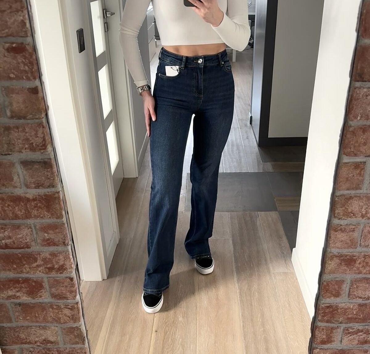 Перші Мом Манго, мені така модель йде. Другі Wide leg Манго, таю одні такі широкі, теж ніби норм, хоча не так добре як Мом) Треті Flare від Зара, такої моделі не маю. Поміряти не маю де, колір потрібен саме такий (носити під рудий/коричневий ремінець)