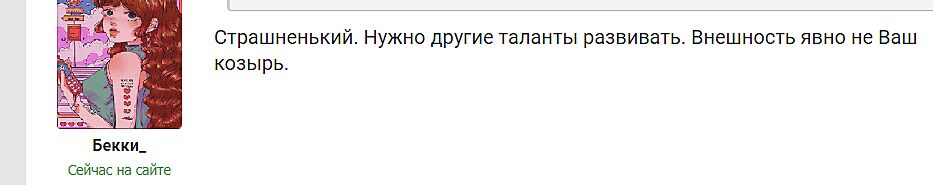 Эх Серёга , может тебе в ТЦК там и внешность подрихтуют и мужика из тебя сделают. То,что у тебя достоинство между ног ещё не значит, что ты мужик .... Ты реально нудная, душная бабища.. меня никто не любит, никто не уважает ....реально задолбал. Ну или к психиатру внешность там не исправят но в чердачке твоём порядок наведут.