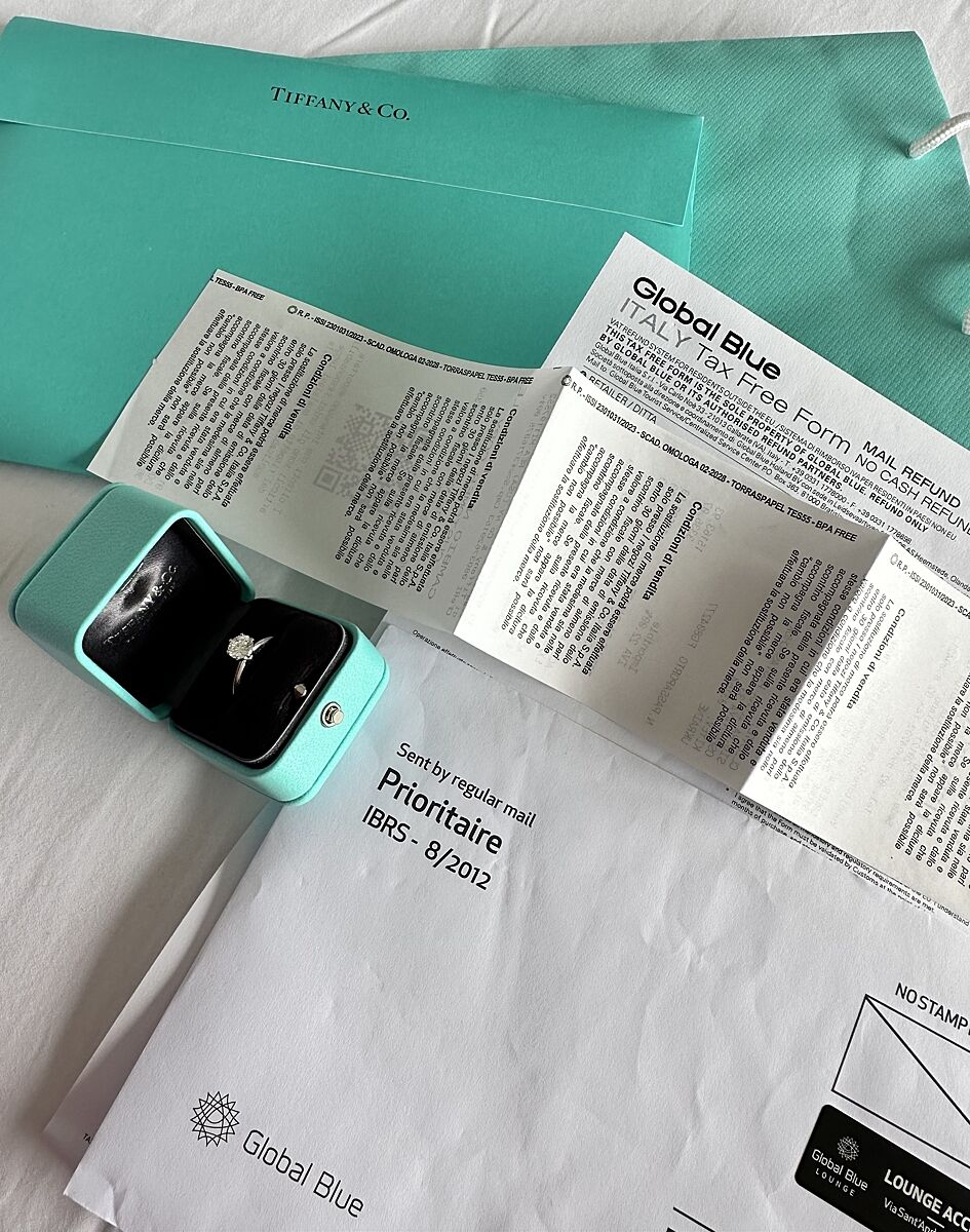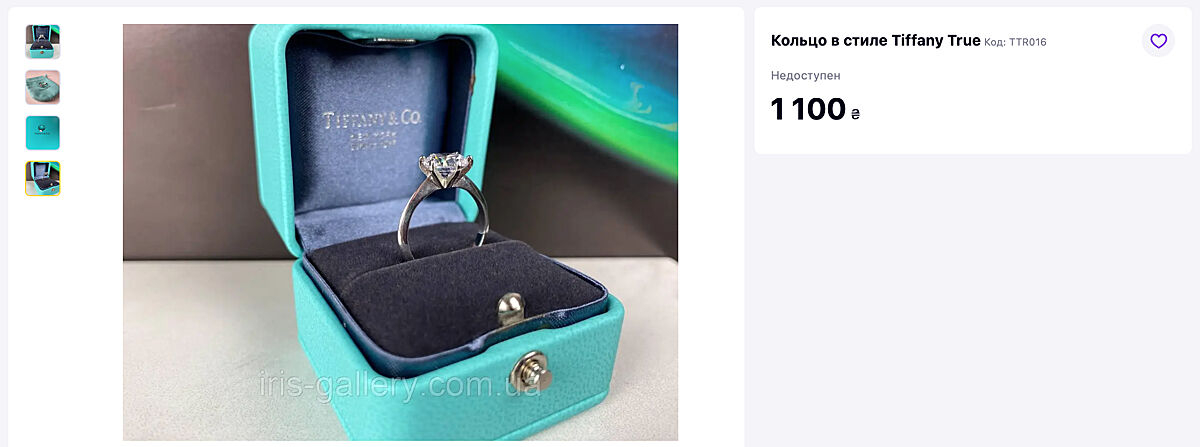 Судячи з телефону,то каблучка може бути підробкою.Можливо каблучка автора теж не справжня,тільки футляр Тиффані.