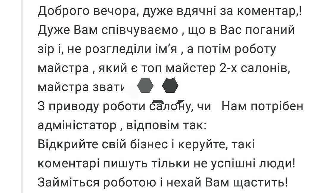 Думаєте це власниця цієї шарашки відповіла на відгук?