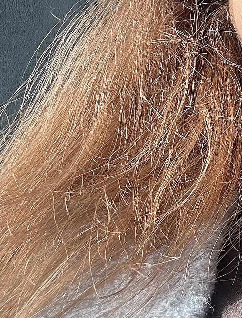 О, шось мені ваше волосся нагадує) така само різниця в кольорі між хвостиками і рештою волосся