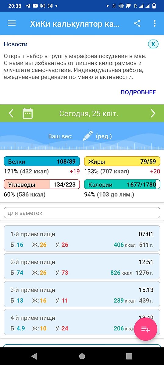 Нет, просто неделю уже считаю, и постоянно так выходит, что укладываюсь в калории, но белка больше и иногда белка и жиров
