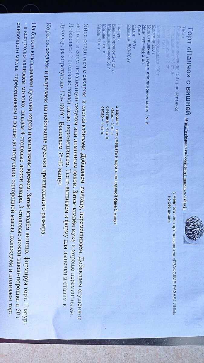 У меня вот такой рецепт шел как Графские развалины( но без вишни). А на каком-то сайте увидела его, как Панчо.