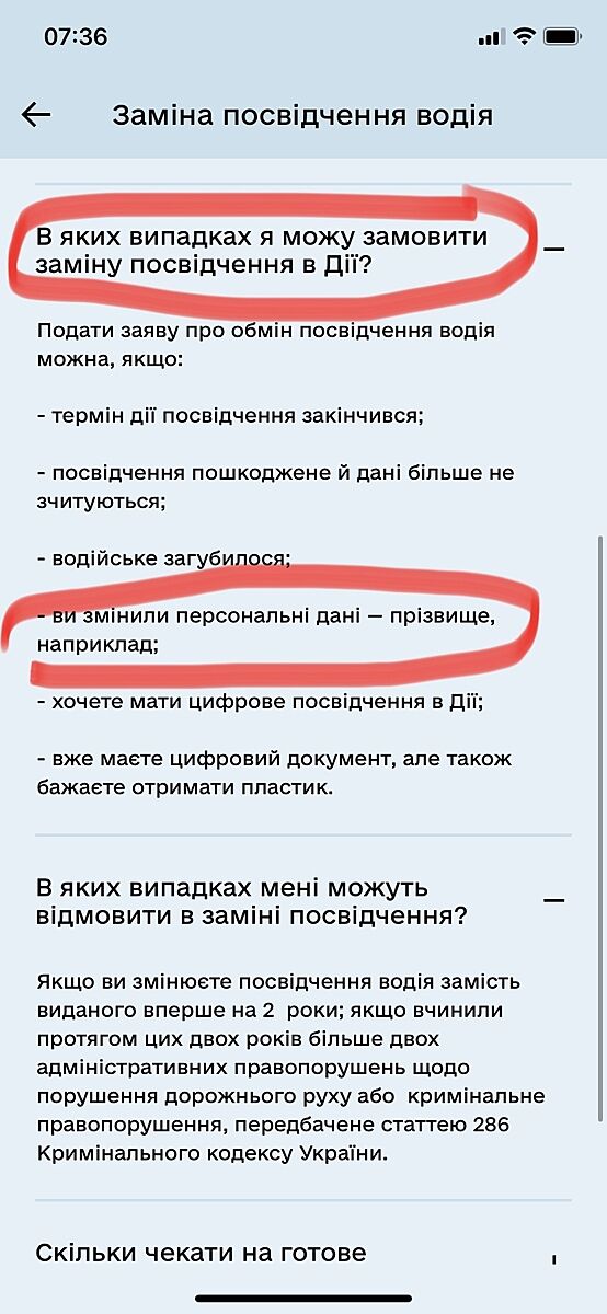 Подала заявку в дії на заміну посвідчення водія через зміну прізвища і отримала відмову.