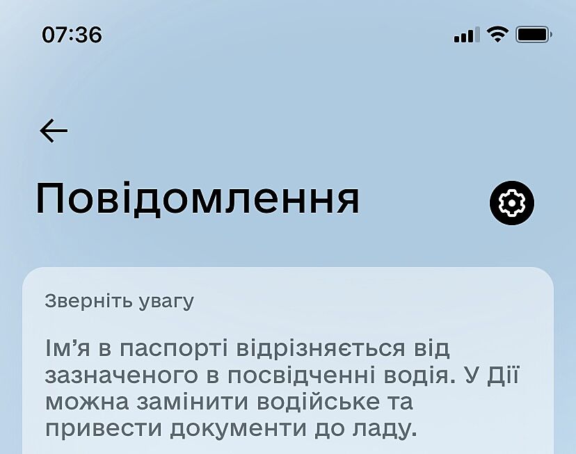 Посвідчення водія. Виявлено невідповідність інформації зазначеної в заяві або долучених електронних копіях (фотокопіях) документів відомостям наявним у відповідних реєстрах та базах даних. Зверніться до найближчого ТСЦ МВС