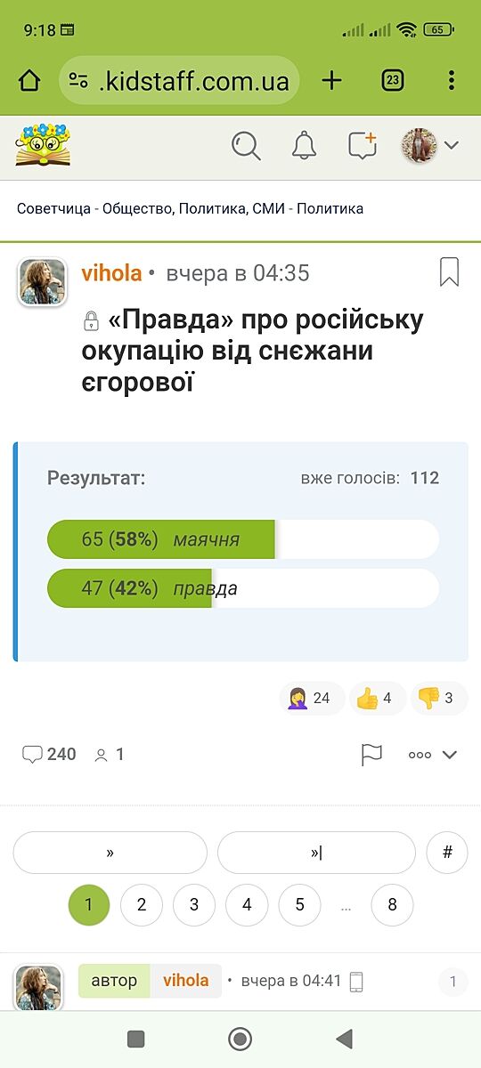 Вчера на высер о том, как хорошо жить в оккупации, почти 50% написали что это так.
