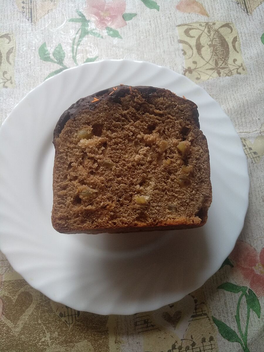 В разрезе она должна была быть как кекс зебра,в разводы.Но я вымешивала второй раз и шоколад окрасил все белое тесто