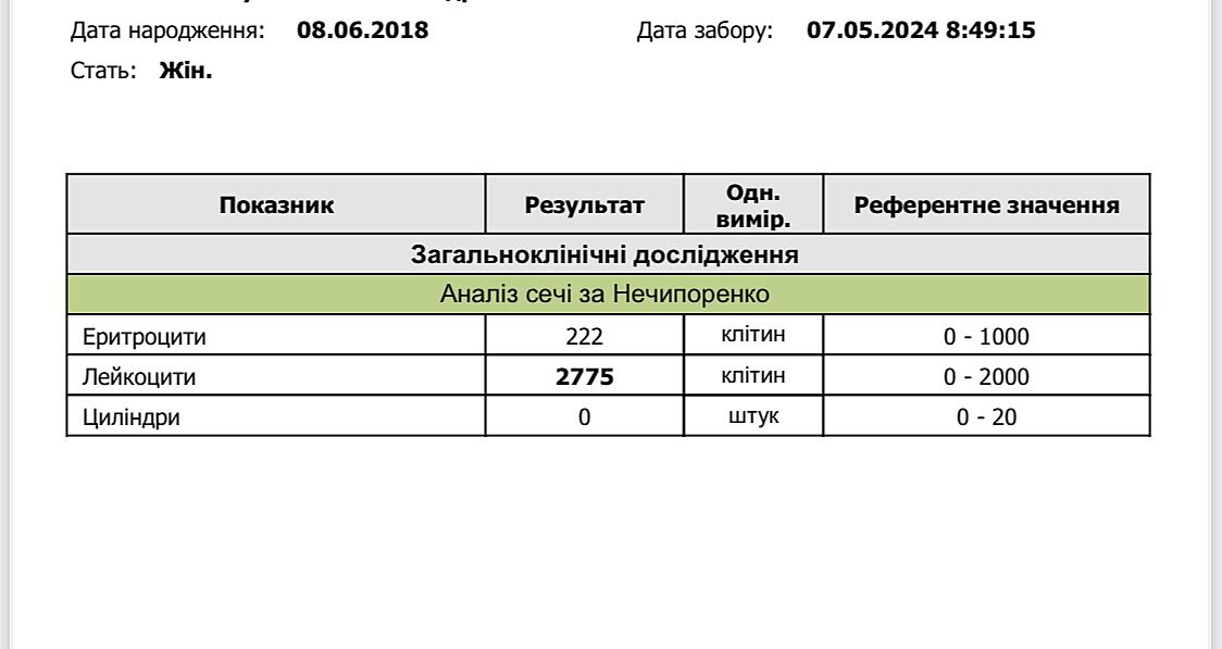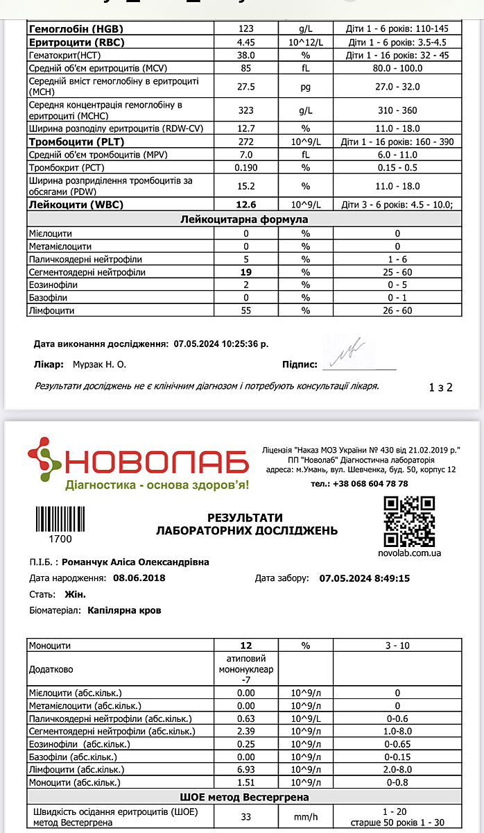 В пятницю у дитини 5 років трішки ніби були підпухші очі, як після плачу. Більше ніяких симптомів. В неділю була висипка типу кропивниці, після антигістамінного зійшла але повторилась ввечері. В понеділок потрапили до педіатра, сказала ніби горло трохи червоне. Направила на аналіз крові та сечі. Почався нежить, ніс погано дихав.