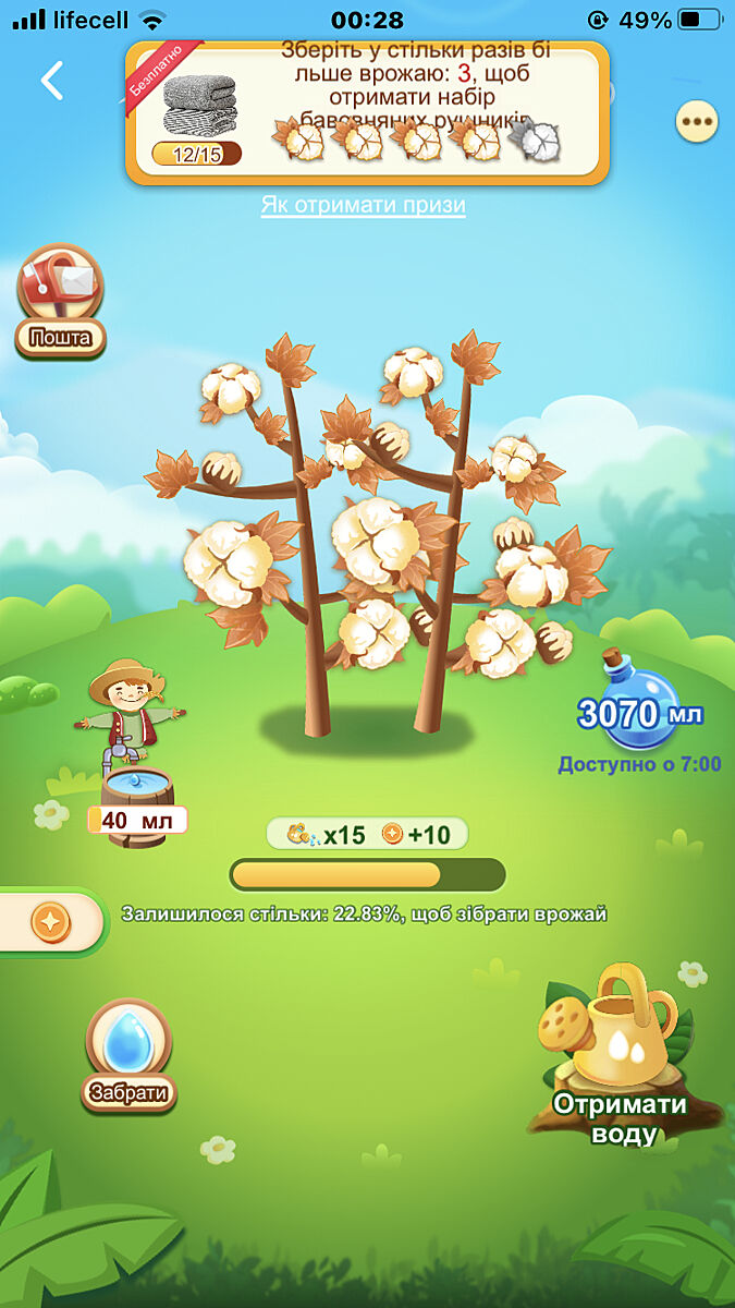 Вам поливать еще месяц. Там 14-15 самые тяжелые уровни чтобы их быстрее пройти покупала себе разное что нужно чтобы больше воды дали. Уже два полотенца есть. Скоро болью третий раз не знаю ещё что брать за приз