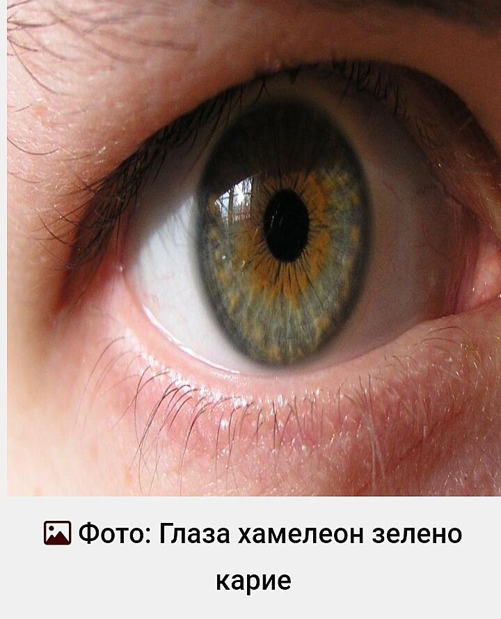 На фото приклад центральної гетерохромії. Судити про колір можна з того, яку площу займає який колір. Тут багато коричневого, тому можна сказати, що очі карі. В мене теж так, але коричневий ореол трохи менший, тому всі вважають, що мої очі зелені)