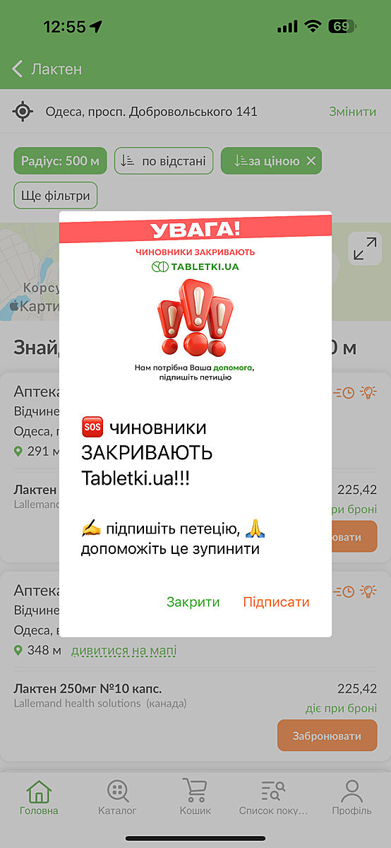 Тільки що бронювала ліки і вилізла така табличка, хотіла підписати але посилання не перекинуло на петиції, можливо в когось є посилання?