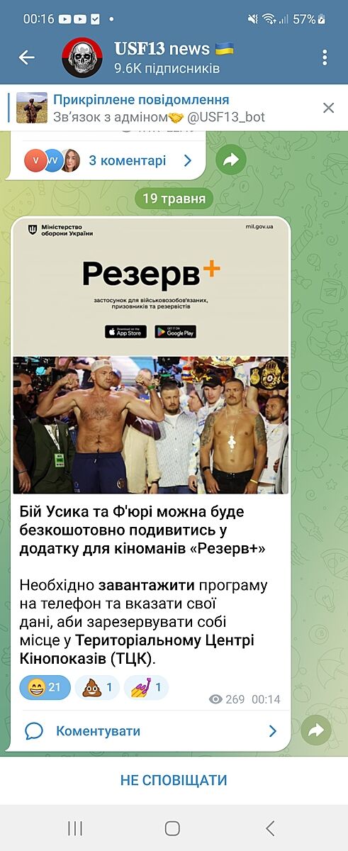 Тут в другой теме дали ссылку на тг канал в світі боксу, тоже рабочая