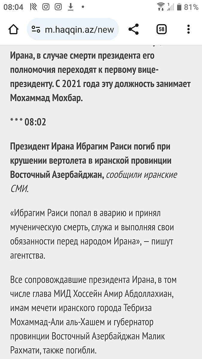Первые реакции политиков и лидеров стран на гибель президента Ирана Эбрахима Раиси: