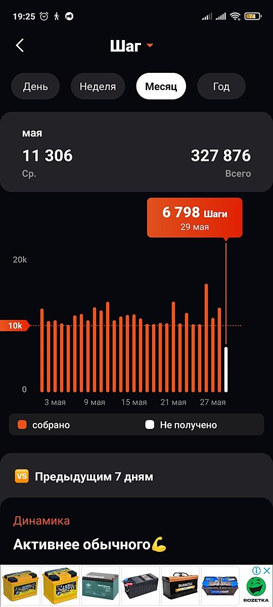 Блін, подивилась щойно скільки я ходжу. Це звичайний робочий день, робота сидяча. До роботи і з роботи їжджу на авто. Але все одно за день майже 10 т кроків набирається