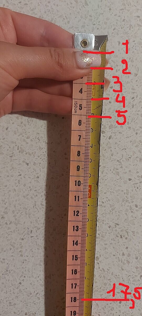 вот в этом и проблема - на отметине 17,5см... ниже посмотрите на фото - 18 там никак не может быть - сантиметр у Вас с 1, а не с нуля - сейчас все расписала Вам