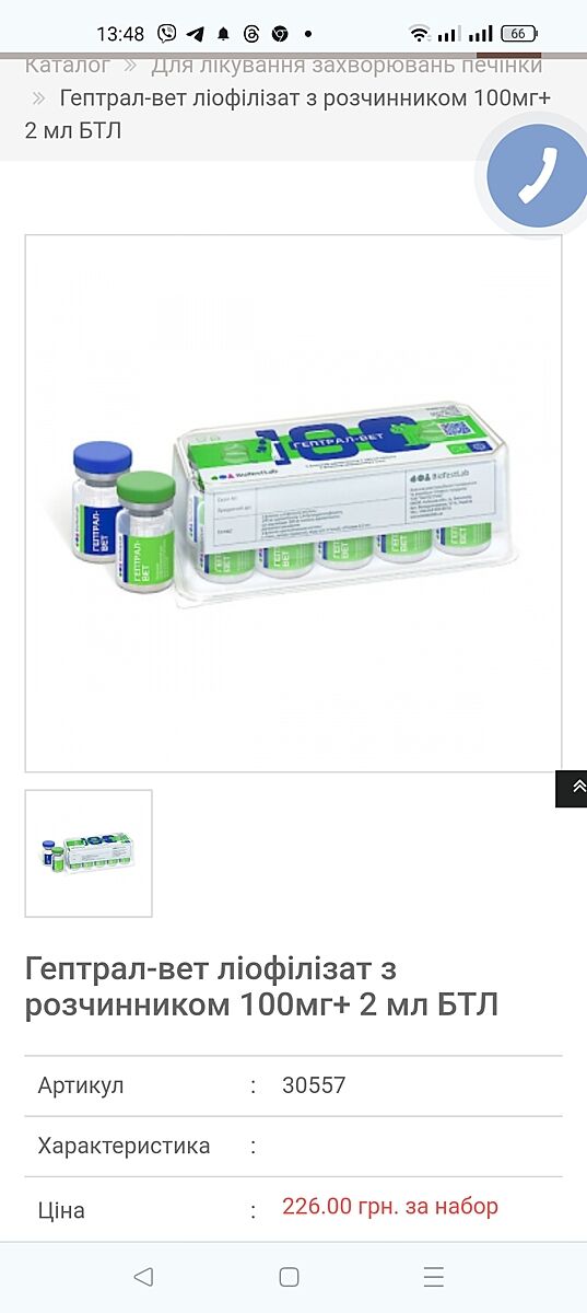 Это человеческое, мегаштука для любых печеночных хворей. Дорого. Но работает. Вам надо то, что иньекция. Большая таблетка в стеклянной капсуле + жидкость к ней. Разбиваете капсулу, достаете спрессованное содержимое, делите на доли ( примерно 9 доз получится для кота). И раскладываете кусочки в шприцы, вытащив поршень и запихав туда эти куски. Укутываете, прячете в сухое холодное место (твердое содержимое очень гидрофильно). Потом достаете поштучно шприцы, разводите по норме и колете.