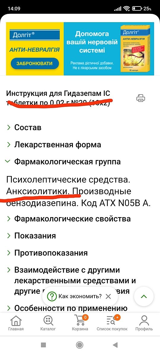 Транквилизатор. Типа гидазепама (у них одна группа)