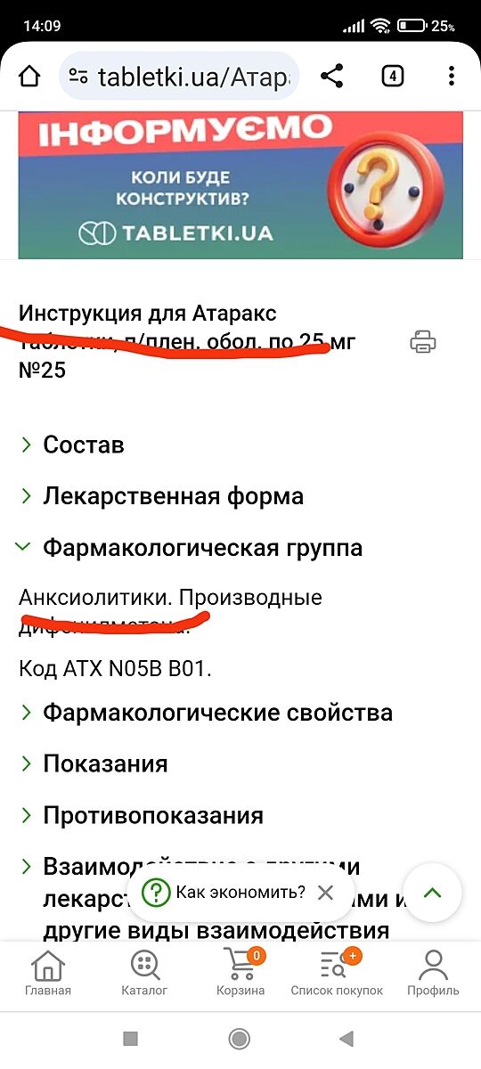 Выписали атаракс от неспокойного состояния, придумывания себе болезней, и постоянного плача на этом фоне.