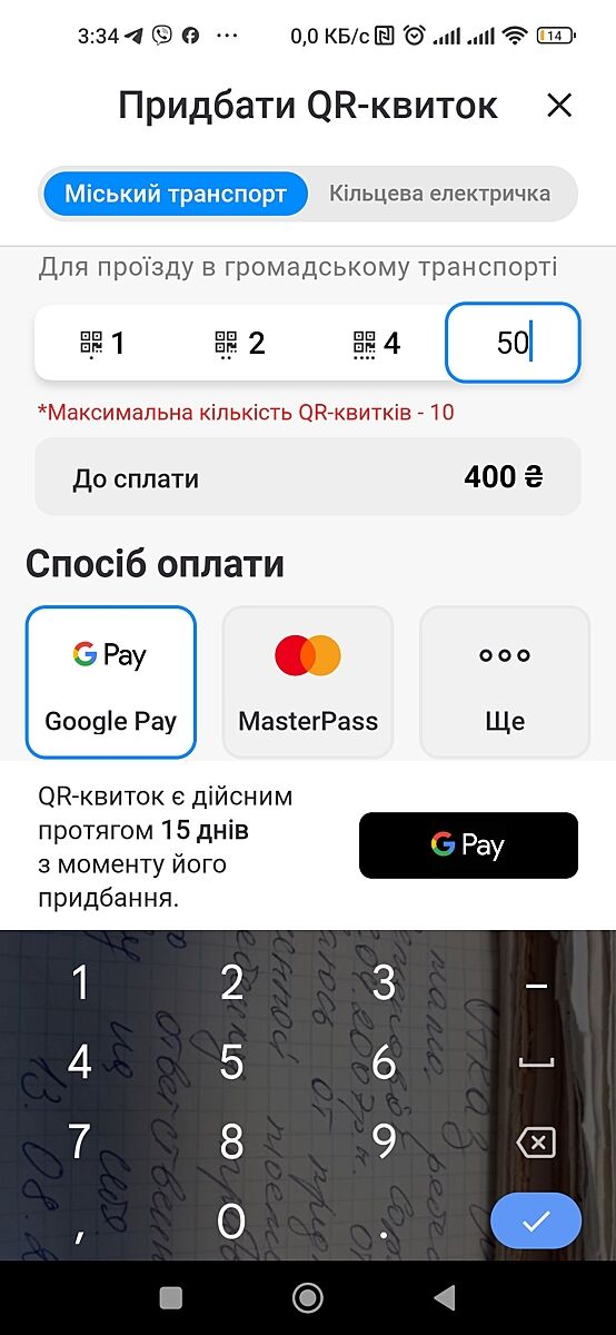 А так можна по одній поїздці в додатку купувати, буде 8грн.Або сплачувати просто будь якою банківською карткою. Або купити в автоматі з продажу квитків, паперовий квиток, з одноразовим QR кодом.